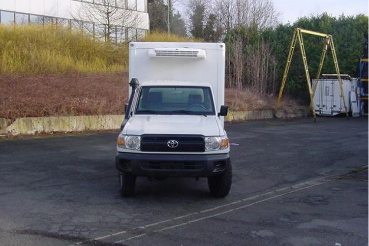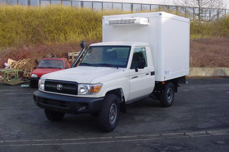Le Toyota Hilux Frigorifique, tropicalisé, est un bon mixte pour des transports en ville et/ou hors des sentiers battus. Sa suspension renforcée lui permet de transporter une plus grand caisse frigorifique que le Land Cruiser. Ce véhicule est proposé en plusieurs cylindrées et RHD (Volant à droite). Tout le mécanisme de refroidissement est installer par une société agréée spécialisée dans le domaine.
